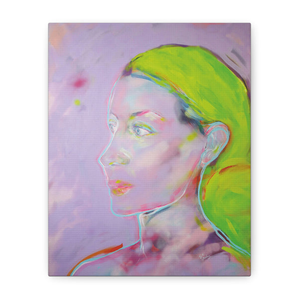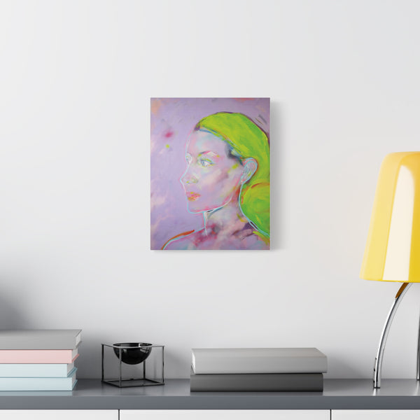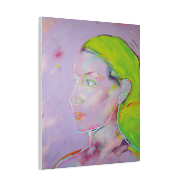 Elevate your space with this modern art print on canvas featuring a lavender female portrait. Ideal for art lovers and those who appreciate contemporary artwork. Perfect for decorating living rooms, bedrooms, and home offices. Great for gift-giving on birthdays, Mother's Day, and housewarmings.