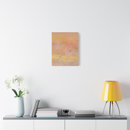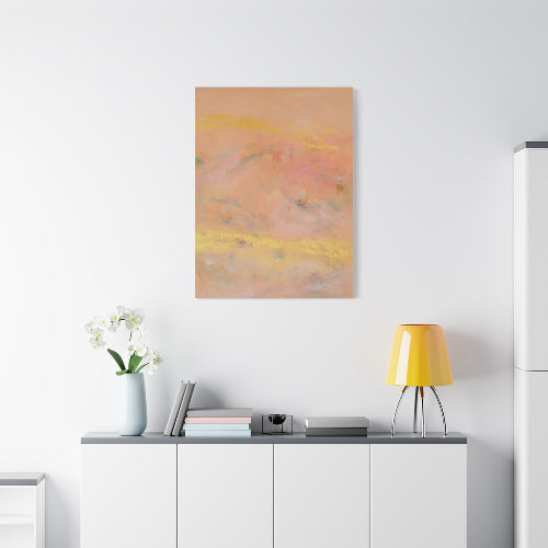 This stretched matte canvas brings warm neutral tones and soft abstract shapes into any room, creating a calm, collected atmosphere. The subtle gradients and organic forms sit quietly on the wall, inviting a slow breath and a second look. Hung above a reading nook or paired with natural woods, it complements minimalist and earth-driven interiors while adding textured visual warmth. The low-glare matte finish keeps the colors muted and sophisticated, so the piece reads as an elegant backdrop rather than a shout. For seasonal gatherings or quiet evenings at home, it blends with layered textiles and warm lighting to enhance a sense of comfort and curated calm.
